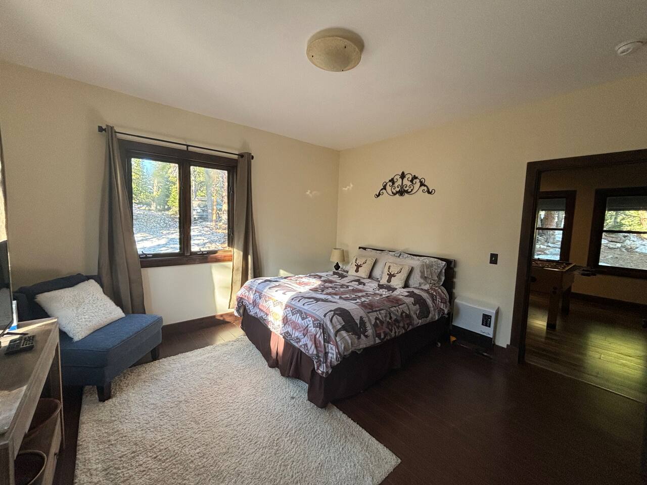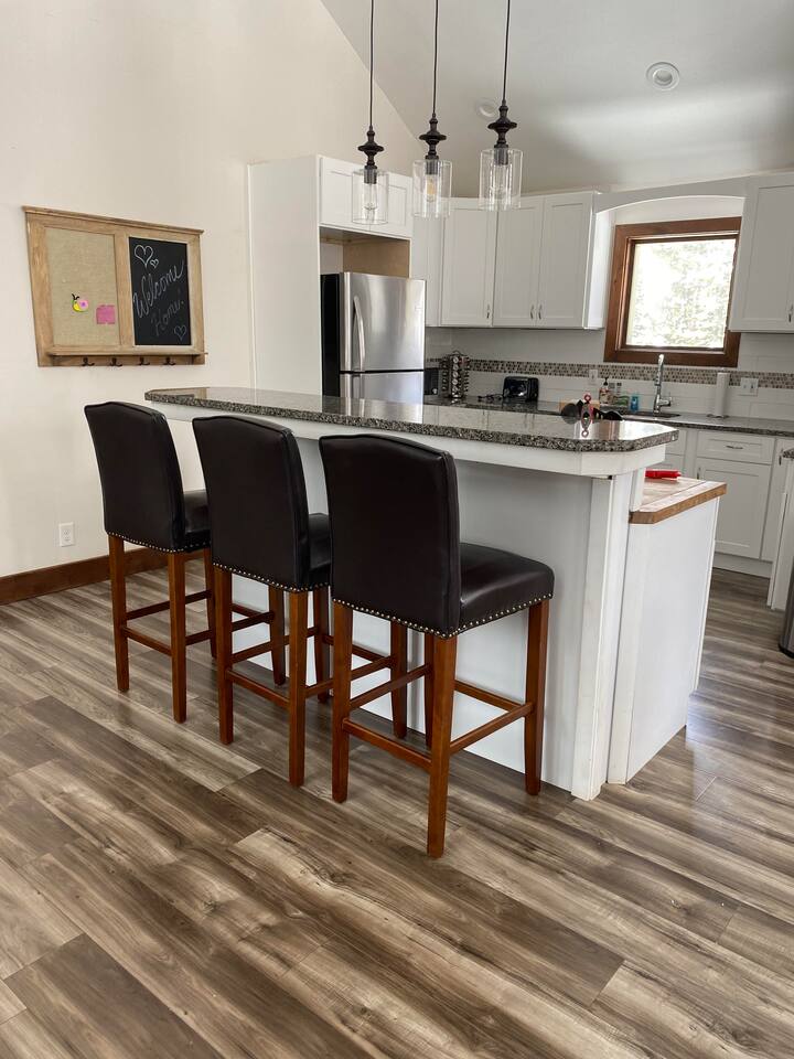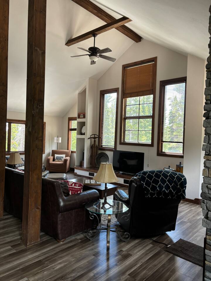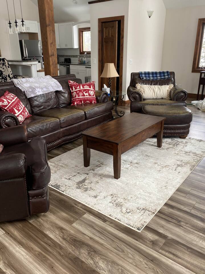Make family memories in this spacious four bedroom and four bathroom chalet, perfect for a skiing or snowshoeing adventure or just a relaxing getaway. This open concept design features modern comforts, a fully equipped kitchen, and large living areas. Explore nearby cross-country skiing, downhill skiing, and snowshoeing. With fast WiFi, plush bedding, and thoughtful touches throughout, this home offers all your comfort and convenience. Book your stay and experience a haven of relaxation!